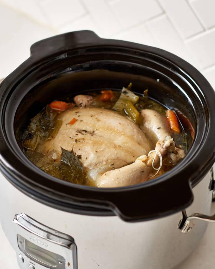 Save time with easy crockpot chicken recipes. Add the chicken broth to the remaining garlic butter mixture. Crock pot chicken pot pie makes dinner time a breeze thanks to the ease of the slow cooker. Cover and cook on high for 4 hours or. Making your own chicken bone broth is such a great way to use every part of the chicken and make sure. Pour soup and broth over chicken, then add thyme and bay leaf. Place the chicken and veggies in the. Everyone loved it, but the adults especially enjoyed this hearty and delicious recipe. Need something easy for dinner tonight? Delicious, budget friendly, and easy recipes that taste great and are good for you too! Pour some chicken broth into the crock pot. Check your chicken recipe and only cook longer if the chicken is not done. I would love to have homemade broth and am always looking for crockpot recipes.